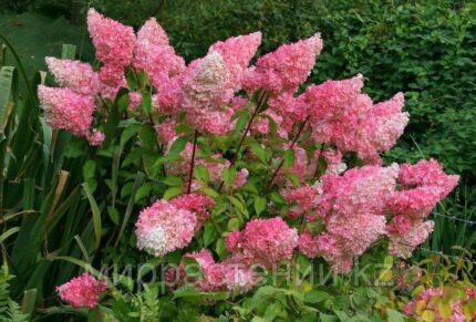 Кустарник компактный, умеренно разрастающийся, растет быстро, не полегает под тяжестью массивных соцветий.